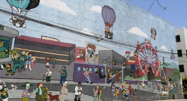 Quienes han visto la serie, en el mural pueden identificar a Bart, Homero, Lisa, Smithe, Burns, Flanders, Apu, Krusty el Payaso, Juan Topo y el Jefe Gorgory, entre otros, junto con lugar emblemáticos de León como el Nou Camp, el Puente del Amor y el Arco de la Calzada.