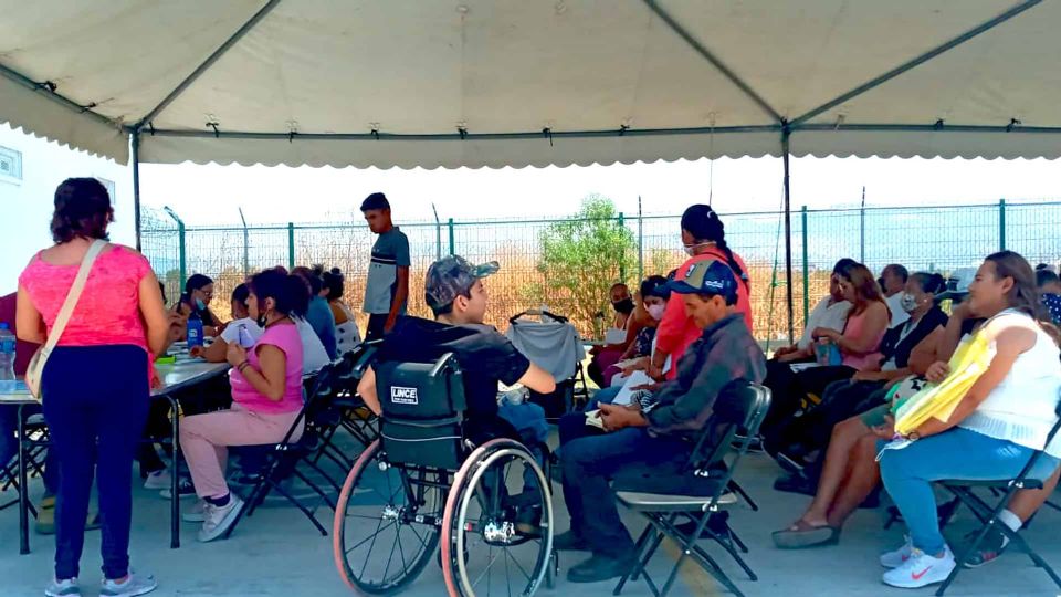 Jóvenes en sillas de ruedas, personas con discapacidades motrices, sensoriales y mentales esperaban sentadas frente a la mini deportiva de esta colonia. Ahí pasaron su tarde para conseguir el apoyo que el presidente Andrés Manuel López Obrador prometió a la llegada de su gobierno.