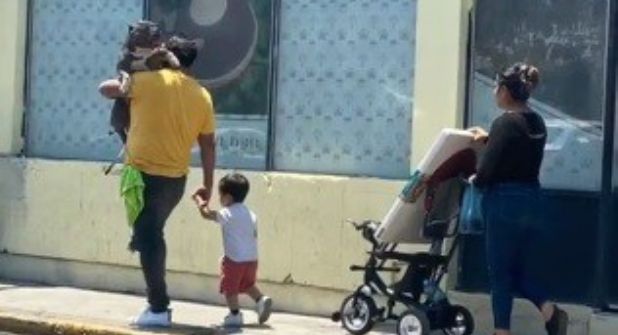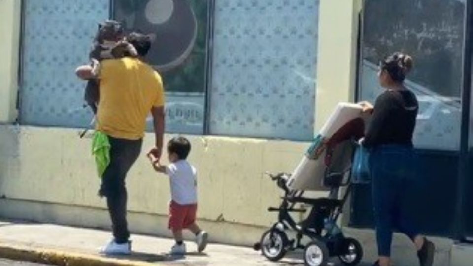 León.- A través de TikTok un video que fue captado en Irapuato se volvió viral, ya que muestra a un hombre que lleva cargando a un perro en su hombro como si fuera un bebé, mientras lleva de la mano a su pequeño hijo.