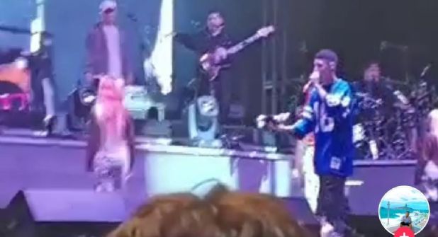 Después de pasarle el muñeco a su novia Maya, Santa Fe Klan continuó el concierto. Este es el segundo doctor Simi que recibe, en agosto le aventaron uno personalizado con el estilo del rapero originario de Guanajuato.