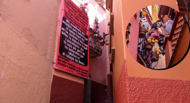 "Me manifiesto ante ustedes para solicitar el apoyo legal que no he recibido y hacerles saber la violencia verbal y psicológica que no cesa por parte de los fotógrafos que laboran en el Callejón del Beso. Atentamente una mujer violentada en mis derechos humanos y pisoteada en mi dignidad", se lee en la lona que fue colocada en el Balcón de Ana.