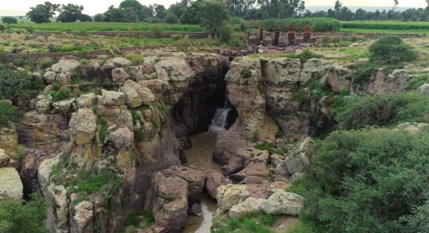 Antes de la parte donde cae el agua, hay un puente. Ahí se queda el agua cuando no llueve y deja de circular.