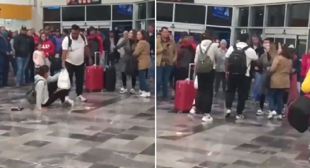 El video del hecho ha sido difundido en redes sociales y llamó la atención pues la mujer que decía ser la esposa del hombre, le gritaba sin importar la presencia de las personas que llegaban al aeropuerto o salían de éste.