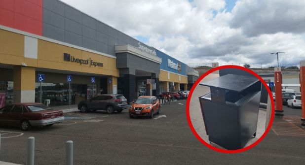 En el pasillo exterior que conecta las entradas de Walmart y algunos locales comerciales es donde se pueden observar estos botes de basura del City Center, que parece fueron desviados.