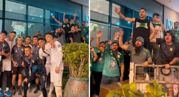 “¡Cantando y aplaudiendo estoy, porque nuestro equipo es el más chingón, porque nuestro equipo es el más chingón, León, León!”, gritaron a coro los porristas dentro del hotel, al momento en que vieron pasar frente a ellos a los jugadores, ante la mirada sorpresiva y sonriente de residentes árabes que se encontraban en ese momento en el lugar.