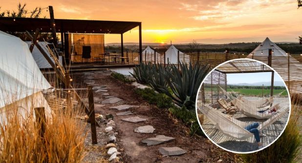 A unos 20 minutos del centro de San Miguel de Allende se localiza Nómada Glamping que también ofrece a sus huéspedes pozas de aguas termales para completar un descanso relajante, hay catas de vino o cerveza artesanal y tiene área de fogata y coffee bar.