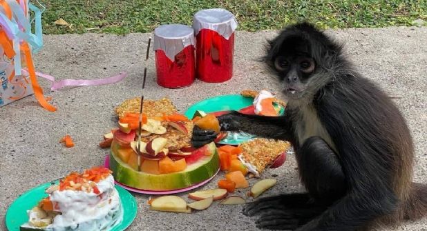 Otro ejemplar de esta especie estuvo acompañando el festejo, a lo que los usuarios de las redes sociales bautizaron la fiesta como 'monkeyparty', pues fue todo un festejo para ellos.
