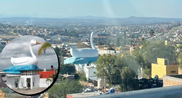 San Miguel de Allende.- Si se visita San Miguel de Allende y se está en una de las partes altas de la ciudad se puede observar un enorme pato que se encuentra encima de un edificio, el cual ha llamado la atención tanto de habitantes como de visitantes.