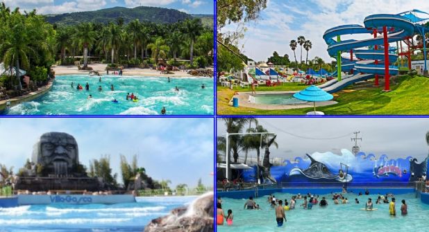 Tiene albercas de olas, playa artificial, chapoteadero para los más pequeños, toboganes y área infantil, además de áreas verdes, asadores, sillas y mesas, baños y regaderas con vestidores.