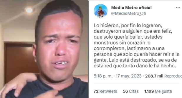 “Lo hicieron, por fin lo lograron, destruyeron a alguien que era feliz, que solo quería bailar, ustedes monstruos sin corazón lo corrompieron, lastimaron a una persona que solo quería hacer reír a la gente. Lalo está destrozado, se va de esta red que tanto daño le ha hecho”.