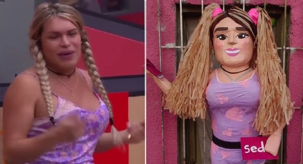 En la piñata se muestra a Wendy Guevara, con su clásica pijama de color púrpura y rosa, que es la misma que la leonesa utiliza y la ha caracterizado en La Casa de los Famosos, también tiene el peinado rubio y trae el micrófono que utiliza en su sección que se ha vuelto popular "Resulta y Resalta".