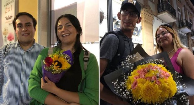 Mary, una joven que llevaba flores, señaló: “Es bonito recibir flores, Me las dio un amigo”.