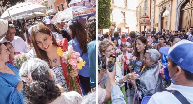 La candidata a la gubernatura del estado de Guanajuato compartió en sus redes sociales imágenes de su recorrido por las calles de la Capital del Estado en donde recibió saludos y flores de guanajuatenses.