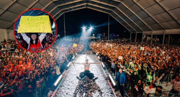 El guanajuatense demostró lo bien querido que es con el público entre la multitud de los fanáticos que portaban cartulinas pidiéndole cantar y bailar con él en el escenario algunos de sus éxitos.