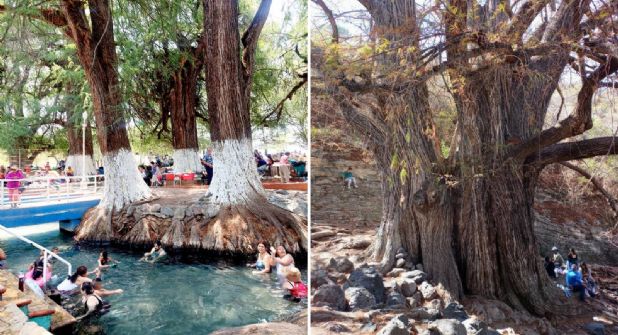 En los alrededores donde se encuentra este longevo árbol se encuentran también otros ahuehuetes que sobreviven con el agua de un manantial.