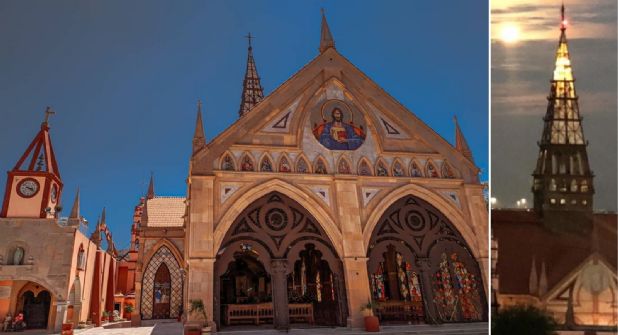 La majestuosidad se puede ver en su construcción de estilo gótico, donde resaltan 20 coloridos vitrales que conforman sus paredes, su piso interior es de mármol, contiene columnas de cantera, la torre cuenta con material de piedra ónix y tiene forma de aguja, en donde se encuentra el campanario.