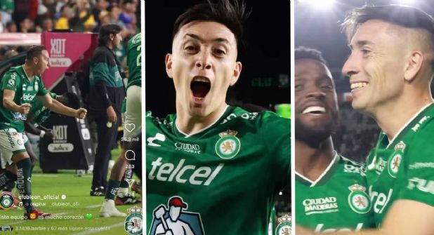 León.- Con euforia y alegría, así festejaron los jugadores del León el triunfo sobre los Tigres en el Glorioso ante la afición esmeralda que celebraron la victoria del sábado 22 de febrero y el buen paso de la Fiera en este torneo Clausura 2025.