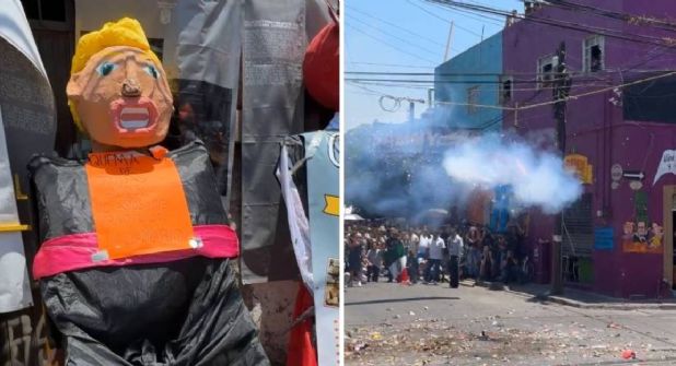 El primero en ser quemado fue Donald Trump el cual se llevó las mentadas y recordatorios del 10 de mayo, así como una rechifla generalizada y abucheos de parte de los asistentes.