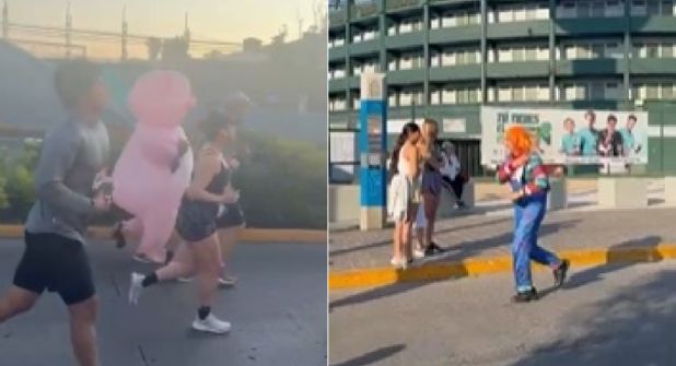 Aunque, los aplausos y los gritos de ánimo fueron principalmente para quienes corrieron caracterizados de personajes de cómics o de televisión, como Batman, Robin, Mario Bros, Chucky y un Puerquito, además de otros con máscaras de lucha libre, alitas de ángel o sombreros charros, y corredoras con faldas indígenas, sin faltar un bebé que su papá los llevó a “correr” en su carreola.