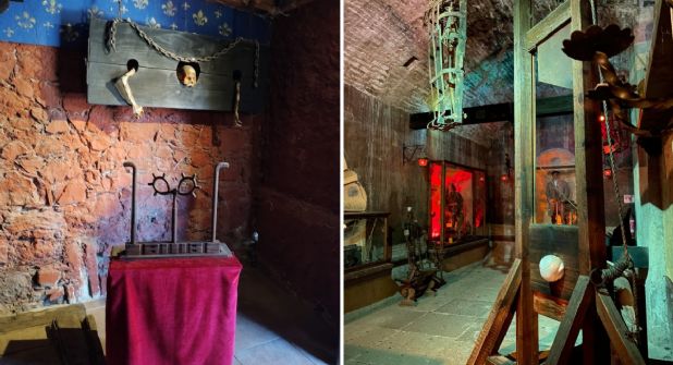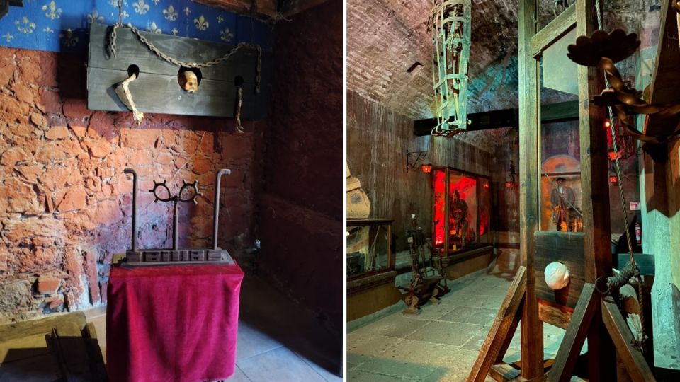 El recorrido se centra en los calabozos subterráneos, en donde se exhiben instrumentos de tortura de la época de la Inquisición.