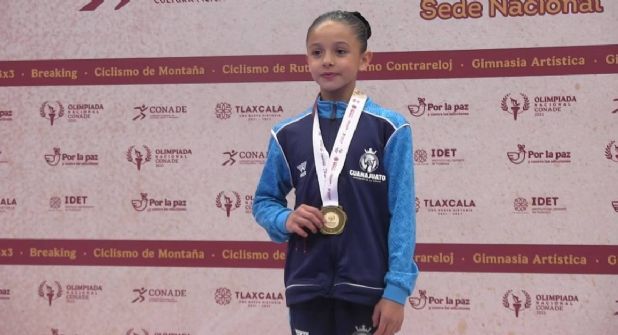 León.- Con su carisma, su gracia, una buena rutina y movimientos bien ejecutados la guanajuatense Renata García Quiroz vuelve a escribir con letras de oro la historia del deporte del estado en la Olimpiada Nacional 2025, pues con una combinación perfecta se alzó como campeona nacional y consiguió para Guanajuato la primera medalla de oro en la disciplina de Gimnasia Artística desde la primera participación del estado en el año 1996.