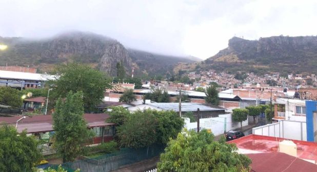De repente, observan extrañados cómo en la parte alta del cerro, se formaron y arremolinaron gruesas nubes, que empiezan a soltar un torrente de agua acompañada de un fuerte viento que no los deja avanzar, cubriéndose todo el horizonte de una gran obscuridad, interrumpida de cuando en cuando por los relámpagos que iluminaban la escena de manera repentina.