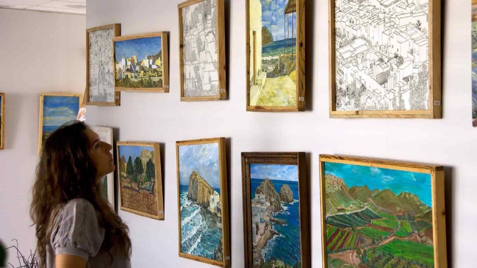 La exposición que consta de 38 cuadros presenta figuras emblemáticas de la naturaleza, como bosques, playas y atardeceres marinos, que se mezclan con alebrijes, tenangos y aspectos de vestigios arqueológicos del México prehispánico.
