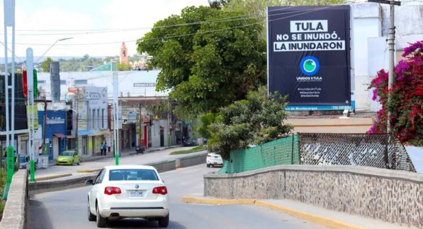 Han pasado cinco semanas desde la inundación y la idea de que la tragedia fue provocada ha empezado a manifestarse en lonas colocadas en viviendas o espacios públicos con la leyenda: “Tula no se inundó, la inundaron”.