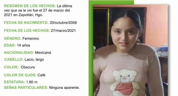 La adolescente fue vista por última vez el sábado 27 de marzo en el municipio hidalguense y desde entonces su familia desconoce su paradero.