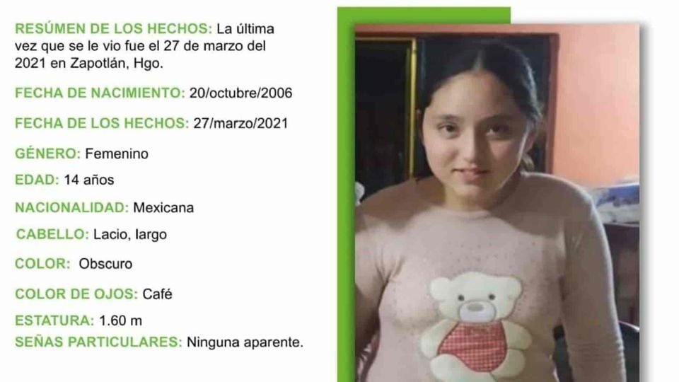 En caso de conocer el paradero de la menor de edad, piden comunicarse a la línea 717 6000 con extensión 8015, a las redes sociales @CBEPHidalgo, o acudir a las oficinas ubicadas sobre el bulevar Felipe Ángeles, a la altura de Santa Julia, en Pachuca.