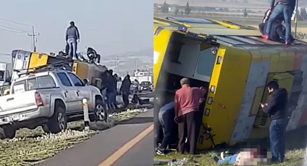 El hecho ocurrió en dirección a Tulancingo. De acuerdo con las imágenes difundidas por varios usuarios en redes sociales, se observa que un autobús amarillo quedó volcado sobre el camellón de la vía y unos metros adelante quedó una camioneta blanca de la misma manera sobre el pavimento.