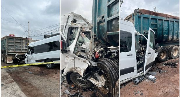 Por el fuerte encontronazo, el chofer de la van murió instantáneamente, pues la zona del volante quedó completamente destrozada.