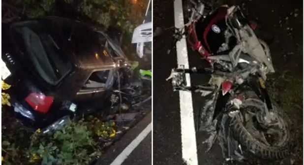El Audi quedó subido a una ladera, mientras que la motocicleta quedó tendida en el suelo y el AVM atravesado en la carretera, en el lugar conocido como El Zapote.