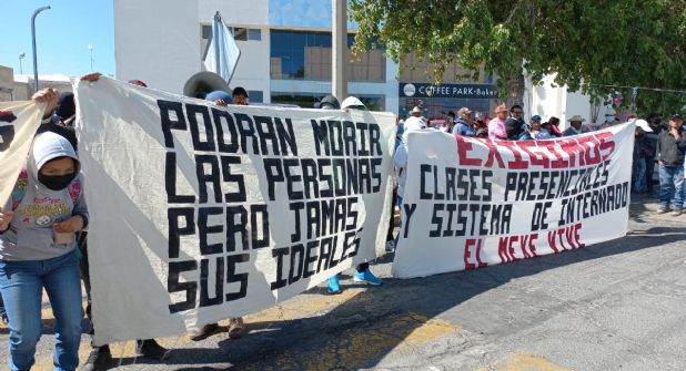 Actualmente, los estudiantes de la Normal Rural de El Mexe reciben clases virtuales (pese a que en la mayoría de los centros educativos del país ya son presenciales) de tres maestros; por ello piden se engruese la plantilla de docentes.
