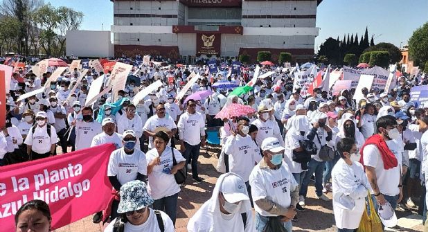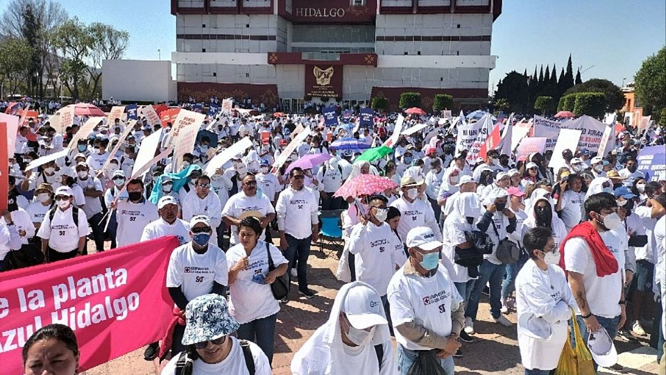 PACHUCA.- Trabajadores de la cementera Cruz Azul de diversos puntos del país se sumaron a la manifestación pacífica que empleados realizaron en la explanada de Plaza Juárez, con el fin de solicitar la intervención del gobierno de estado para recuperar las instalaciones de Tula.