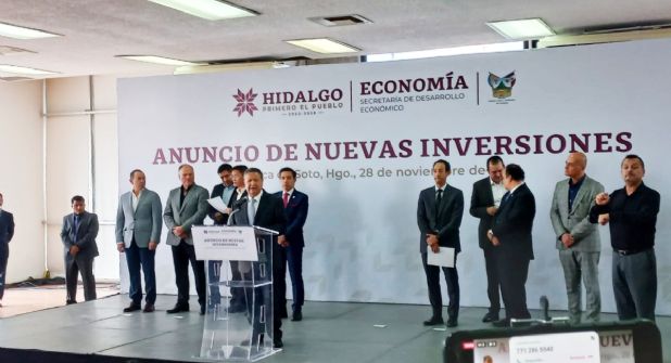 PACHUCA.- Esta tarde el gobernador Julio Menchaca Salazar anunció la primera inversión en Hidalgo por un monto de 10 mil 600 millones de pesos que se traducirán en la generación de 2 mil 860 empleos directos y 5 mil indirectos en distintas regiones de la entidad.