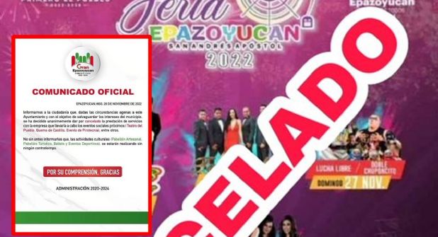 EPAZOYUCAN.- Luego de ser vinculado a proceso el alcalde de Epazoyucan, Fidel A.S, por estar involucrado en el presunto desvío de recursos públicos, denominada Estafa Siniestra, el ayuntamiento municipal dio a conocer a través de sus redes sociales oficiales la cancelación de algunas actividades programadas dentro de la tradicional Feria Epazoyucan en honor a San Andrés Apostol.