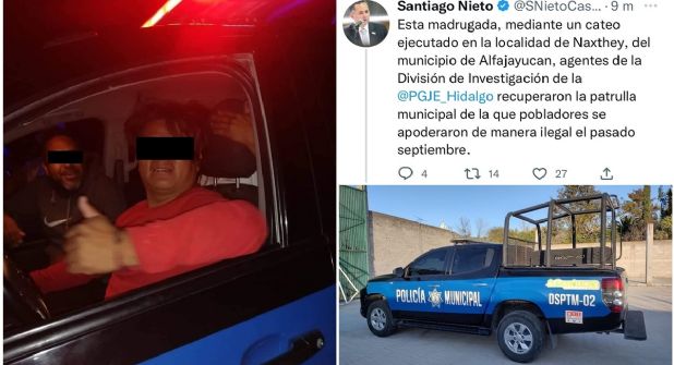ALFAJAYUCAN.- Mediante un fuerte operativo y con el uso de la fuerza, esta madrugada de viernes 4 de noviembre de 2022 fue recuperada la patrulla de la Policía municipal de Alfajayucan, vehículo que se hiciera viral en redes sociales luego de que en septiembre sujetos en presunto estado de ebriedad la robaran y se grabaran.