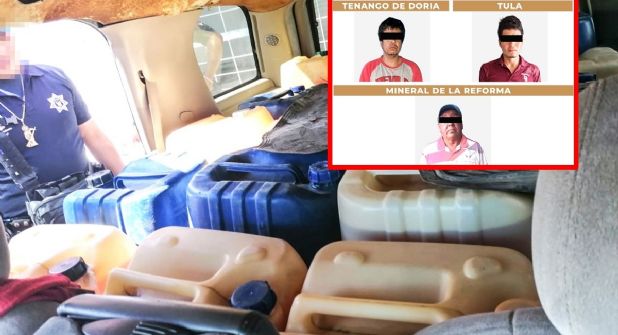 Mientras, en la colonia Campestre Villas del Álamo, municipio Mineral de la Reforma, fue detectado un camión Ford, con plataforma, con placas de Hidalgo, tripulado por la persona identificada con las iniciales M.Z.C., de 60 años. Los agentes incautaron dos bidones para mil litros, con combustible en su interior, cuya posesión legal no pudo acreditar.