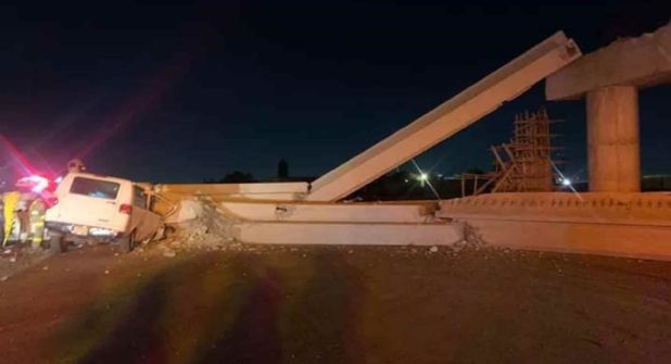 PACHUCA.- La madrugada de este viernes, las vigas estructurales de un puente en remodelación colapsaron sobre la autopista México-Pachuca, a la altura del municipio de Tecámac, Estado de México.