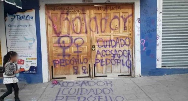 En el domicilio de Edgar Mauro realizaron pintas y colocaron cartulinas; sin embargo, estas fueron quitadas, presuntamente, por trabajadores del municipio, denunció Kamelyn Muñoz Sánchez.