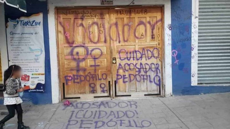 Posteriormente, acudieron a la sede del Ministerio Público a exigir la detención de imputado; más tarde, en la presidencia municipal, los manifestantes hicieron pintas en la fachada como “entrega a tu hermano” y “Zimapán, pueblo trágico”.