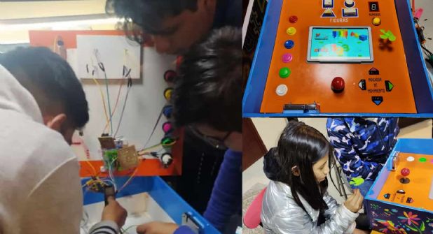 “La práctica hace al maestro, y lo hacen tocando y moviendo. Es un modelo único, pues aparte de que aprenden con la APP en la tableta, practican con los seis juegos que tenemos en la butaca; por ejemplo, tenemos una palanca de videojuego ‘hosting’ donde el niño puede diferenciar la derecha de la izquierda, el arriba y el abajo, es decir, la orientación, todo esto a través de sonidos y luces de colores”, detalló el joven innovador.