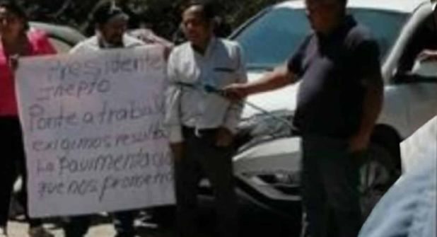 Además, a Alfredo Hernández Morales, electo bajo las siglas del Partido Revolucionario Institucional (PRD), le fue colocada una cartulina en la que se cita: “Presidente inepto”.