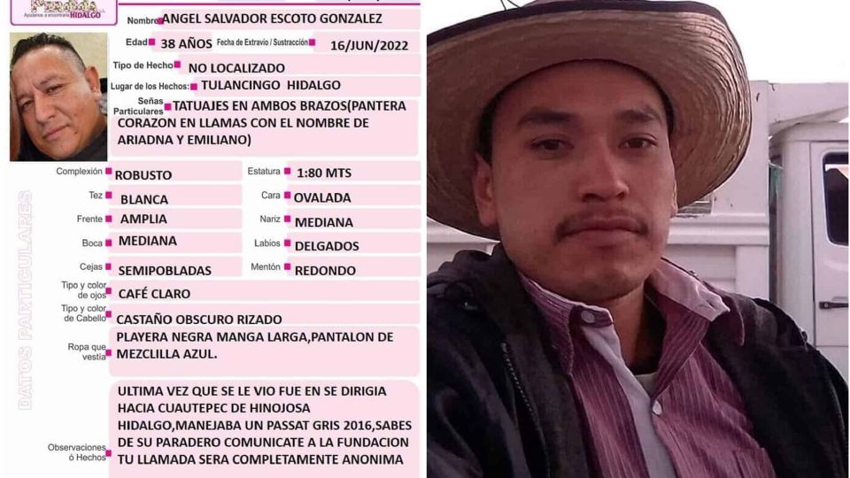 Cualquier información sobre el paradero de Salvador Escoto, la organización civil pidió a la población reportarla a las líneas telefónicas 771 127 8592 y 561 010 9252; o bien, mediante sus redes sociales.