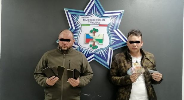 Los detenidos fueron identificados por sus nombres de iniciales S.G.B. y G.G.B. de 34 y 32 años de edad, vecinos de Coacalco, Estado de México, presuntos responsables del robo armado al establecimiento de venta de pizzas denominado “Kukis”.