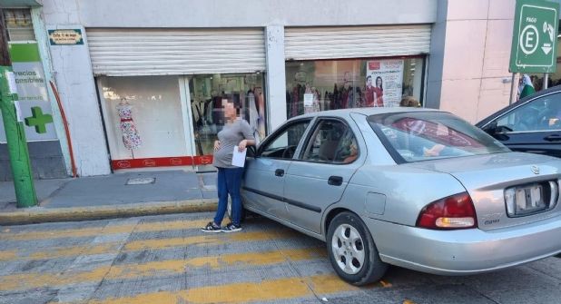 Pues la llanta frontal izquierda de su vehículo sedán invadía la franja del paso peatonal hacia la banqueta, aunque su mamá bajó de inmediato a comprar lo necesario para sus molestias, sin embargo, un oficial de la Policía acudió hasta el sitio.