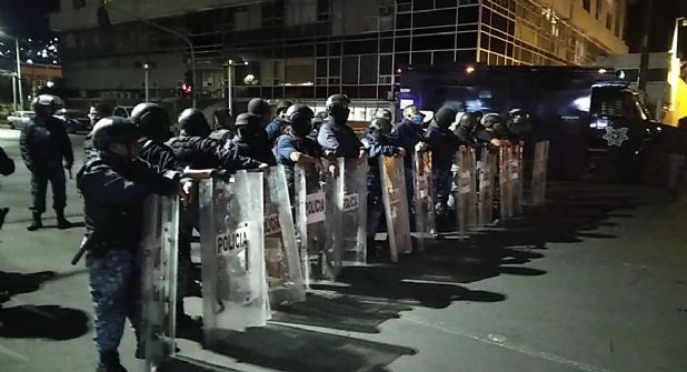 Alrededor de las 11 de a noche, mientras el diputado local de Morena, Timoteo López Pérez, dirigía al grupo de manifestantes y les pedía mantenerse, elementos estatales arribaron por la avenida Madero, donde se detonaron dos bombas para dispersar a los manifestantes, quienes comenzaron a alejarse de la zona.