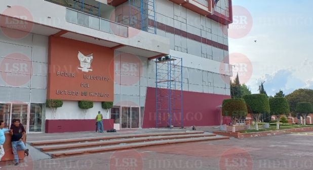 Desde la semana pasada comenzaron los trabajos de rehabilitación en la fachada del inmueble, la cual es pintada de guinda a unos días del cambio de administración.