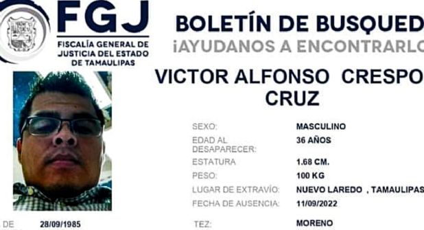 Los allegados señalaron que Víctor Alfonso Crespo fue contratado por la empresa Obras y Servicios "Madero" empresa que también da servicio a la Universidad Autónoma de Tamaulipas (UAT), para remodelar el Centro de Lenguas de Nuevo Laredo desapareciendo el fin de semana.